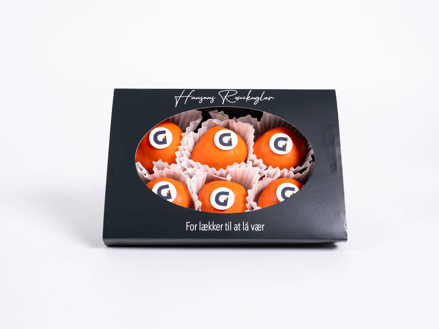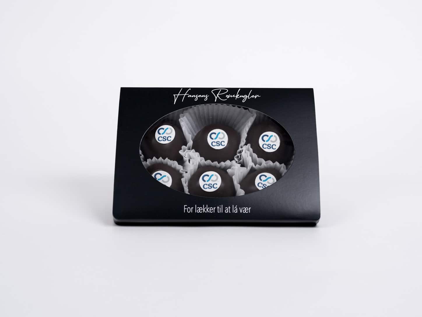 Hos Hansens Romkugler kombinerer vi branding med god smag gennem vores eksklusive logo romkugler – en kreativ og lækker måde at sætte dit firmalogo i centrum. Hvad end du skal afholde kundemøder, receptioner, events eller vil sende en særlig tak til dine samarbejdspartnere, skaber romkugler med trykt logo en uforglemmelig og personlig oplevelse. Vores romkugler fremstilles af konditorer med sans for kvalitet og detalje, og trykket på overfladen tilpasses dit visuelle udtryk.