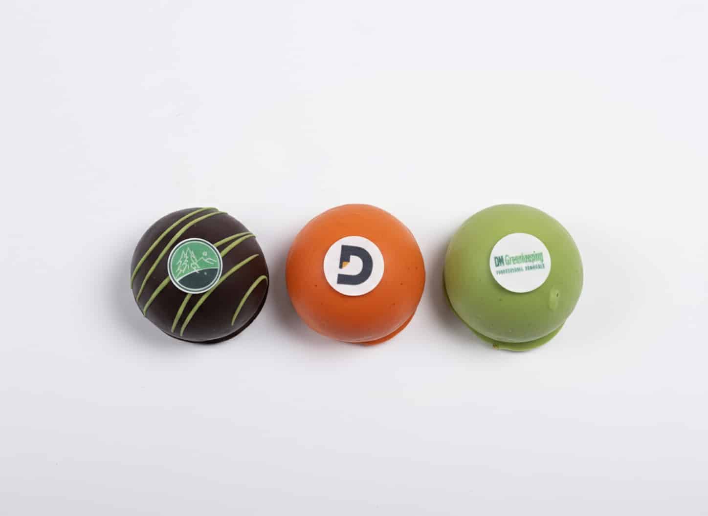 Vores romkugler er håndlavet med ægte ingredienser og den klassiske smag, vi alle kender – men med et moderne twist. Vi trykker dit logo direkte på overfladen med spiselig farve, så du får en elegant og professionel finish. Logoet kan være dit firmanavn, initialer, et slogan eller et særligt budskab, du vil dele. Alt er lavet med omtanke for både udseende og smag, og leveres klar til servering i stilfuld indpakning, der matcher din virksomheds profil.